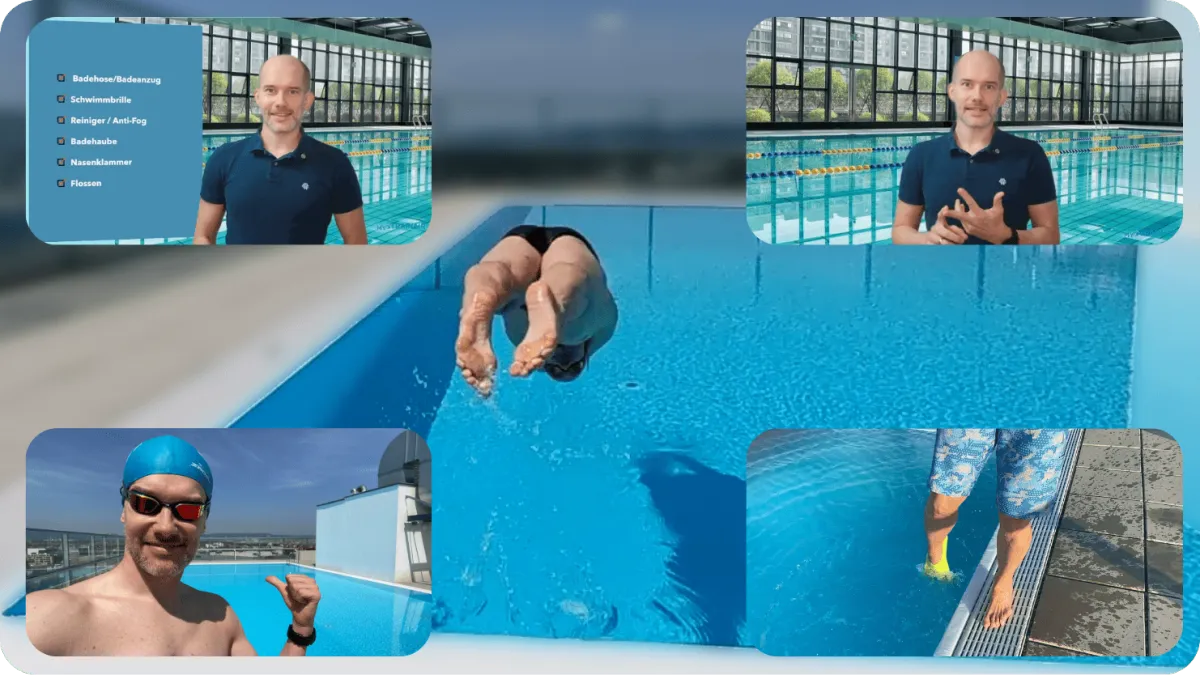 Erlebe praxisnahe Analysen und Techniktraining – setze Tipps & Tricks direkt um und steigere deine Schwimmleistung vor Ort.