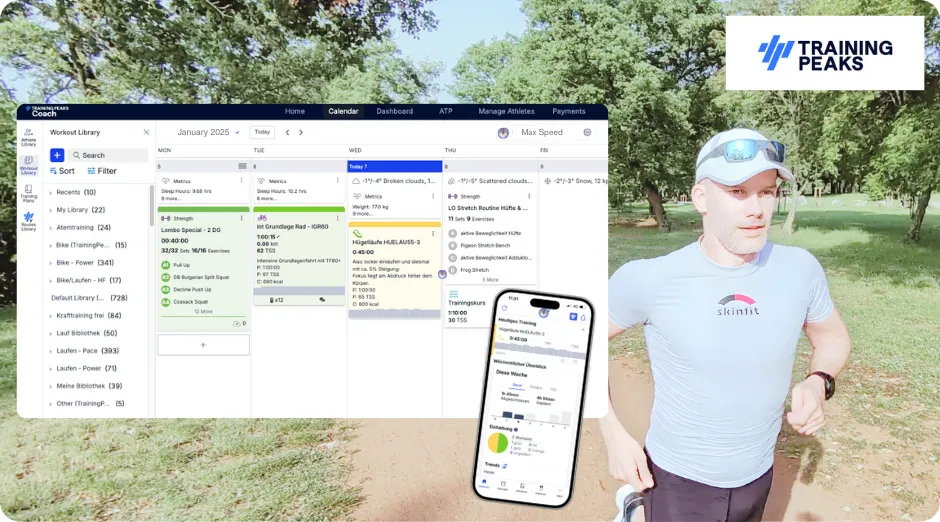 Dein Trainingsplan läuft über TrainingPeaks: präzise geplant, easy kommuniziert, datenbasiert gesteuert. Wir behalten Umfang, Intensität und Regeneration im Blick und du siehst jederzeit, was ansteht, was erledigt ist und wie sich deine Belastung entwickelt. So trainierst du effizient, flexibel und ohne Rätselraten.